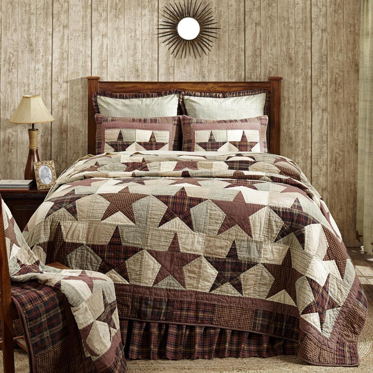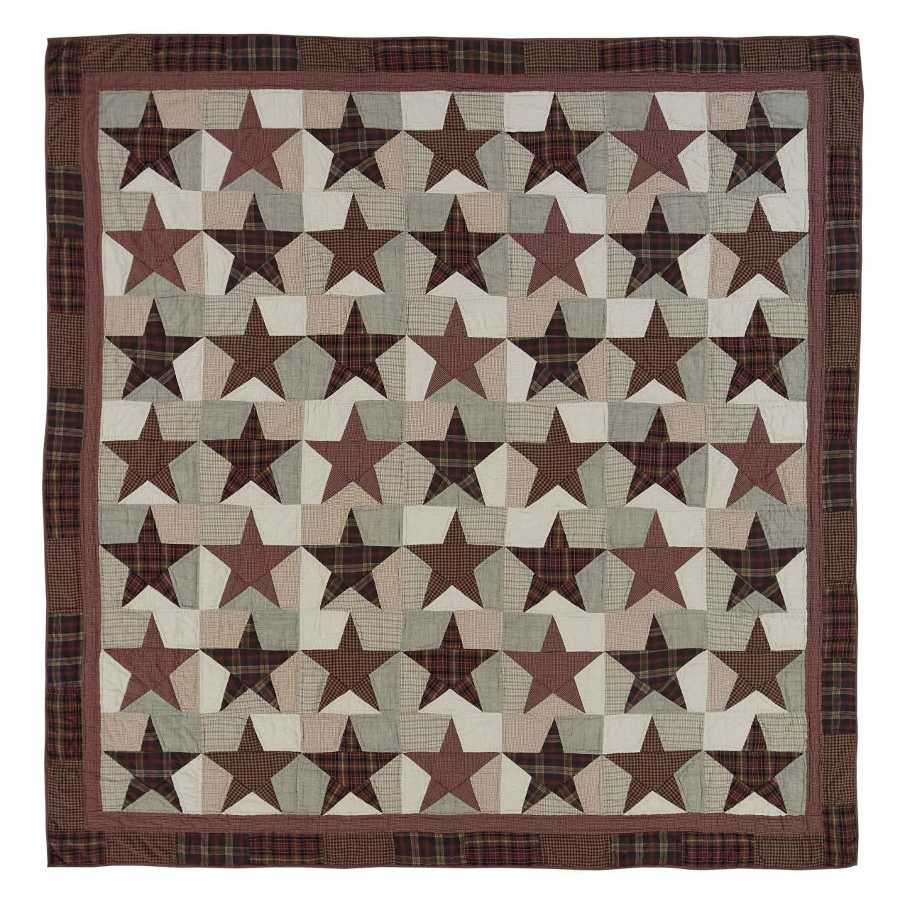The Abilene Star Quilt combines the lovely colors of New England cranberry, khaki tan, warm gray & chocolate to create beautiful American country patchwork blocks showcasing five-point stars. Featuring the popular “stitch in the ditch” quilting technique, this is one luscious country quilt!