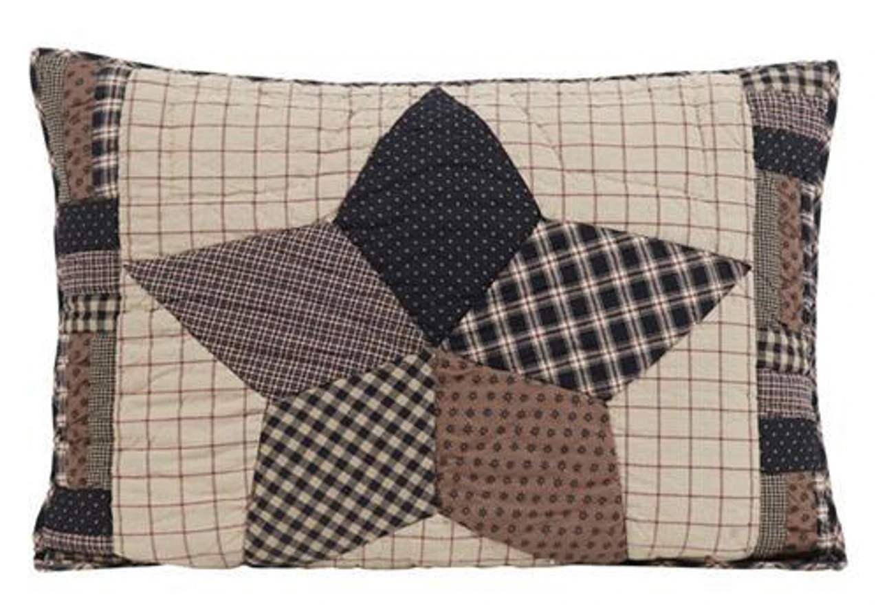The Bingham Star Quilted Standard Sham features one large appliqued five-point star on a tan & garnet windowpane fabric. The borders offer a myriad of plaids & ditsy separated by blocks of fabric, honoring the age-old quilting technique! Add a slice of primitive country appeal to your home!
