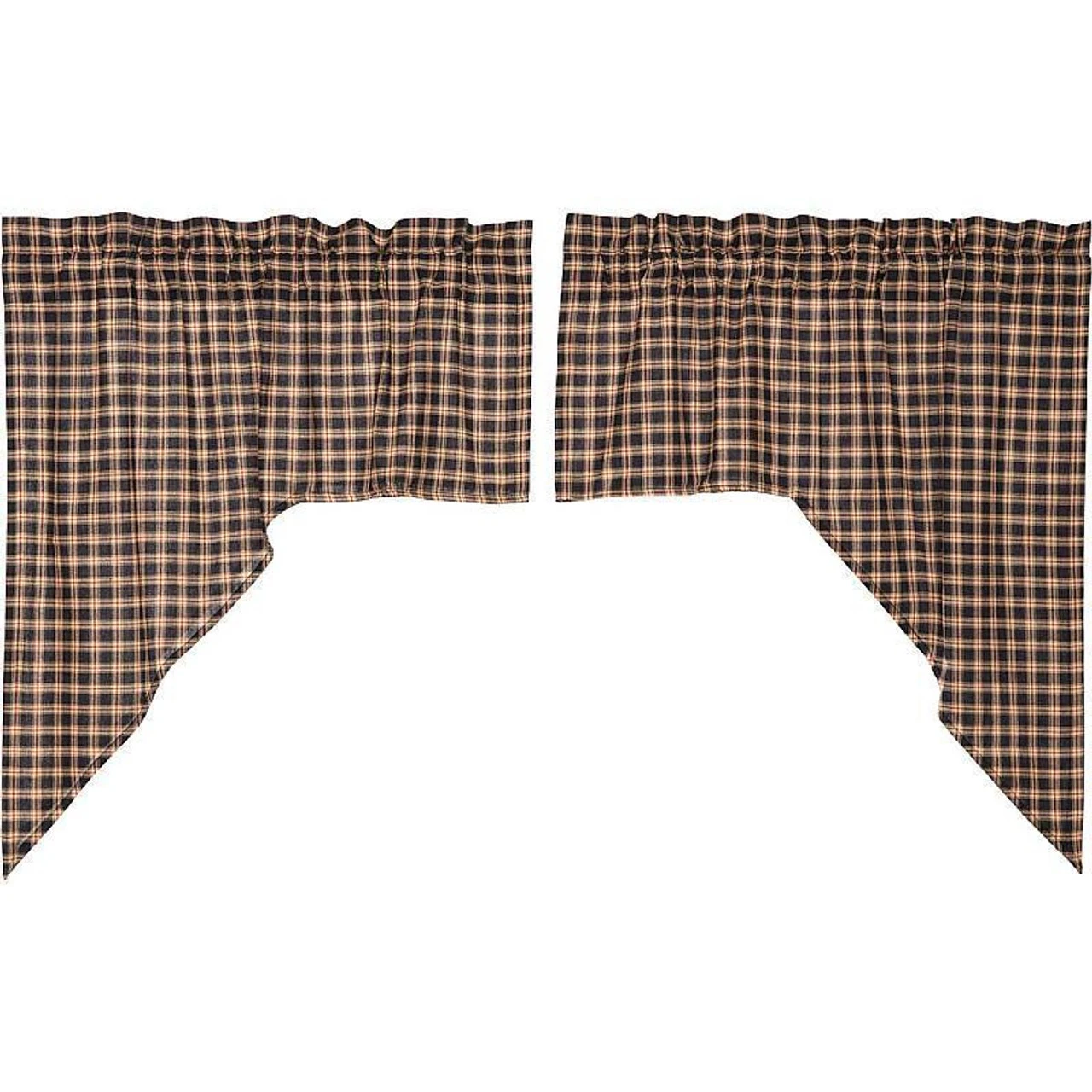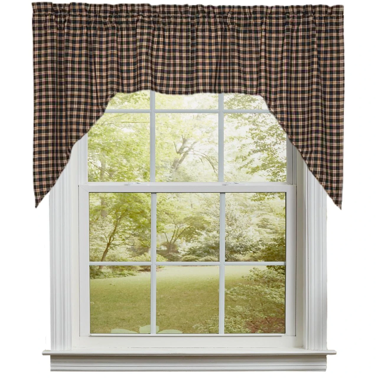 Add a lovely, classic feel to your country home decor! The Bingham Star Swags combine the warm colors of black & farmhouse tan with a splash of garnet to create a lovely plaid. Frame your window with these charming country curtains!