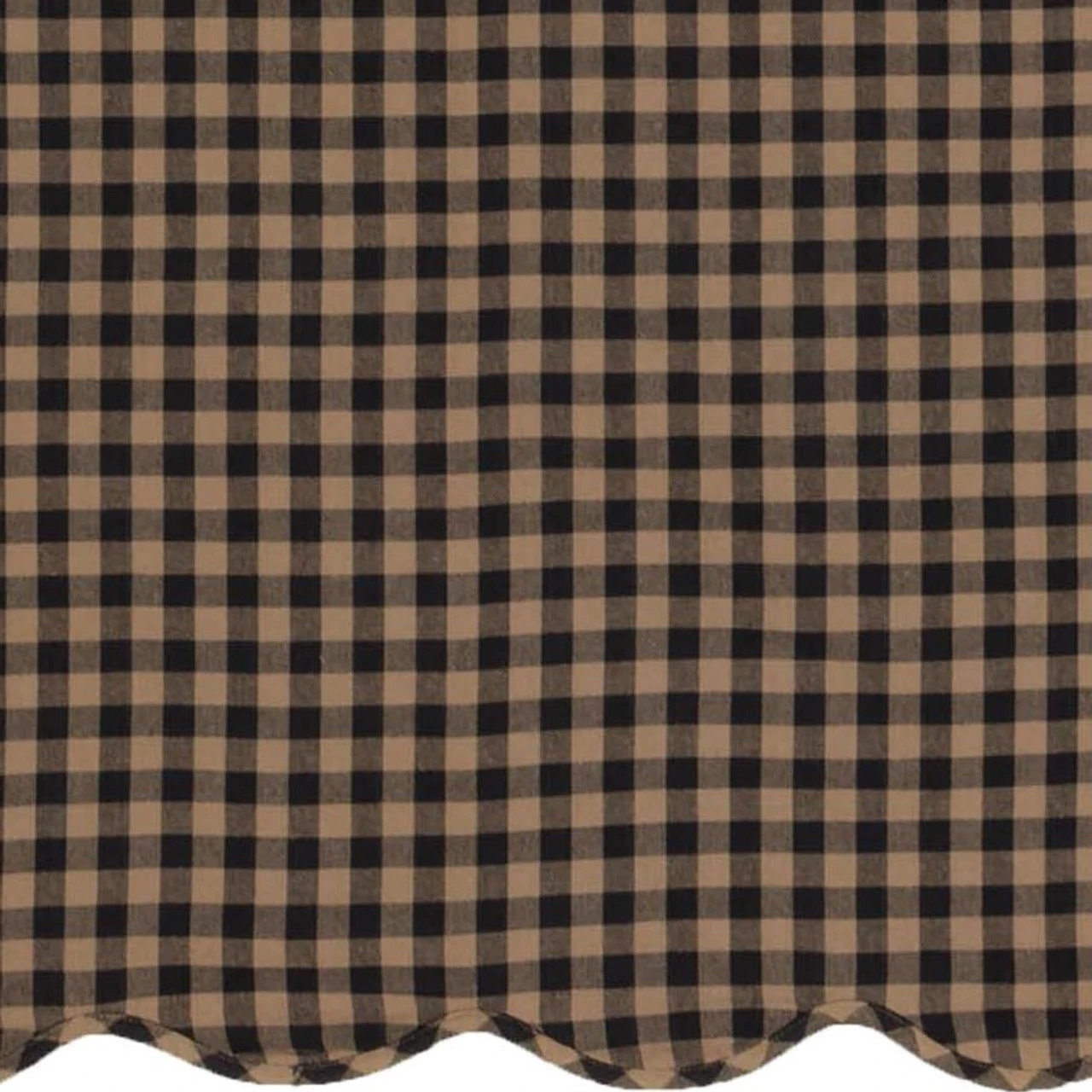 The Black Check Shower Curtain features a fresh, pretty black & tan check that is finished with a soft, flowing scalloped bottom edge! Great way to freshen up your country bathroom decor!