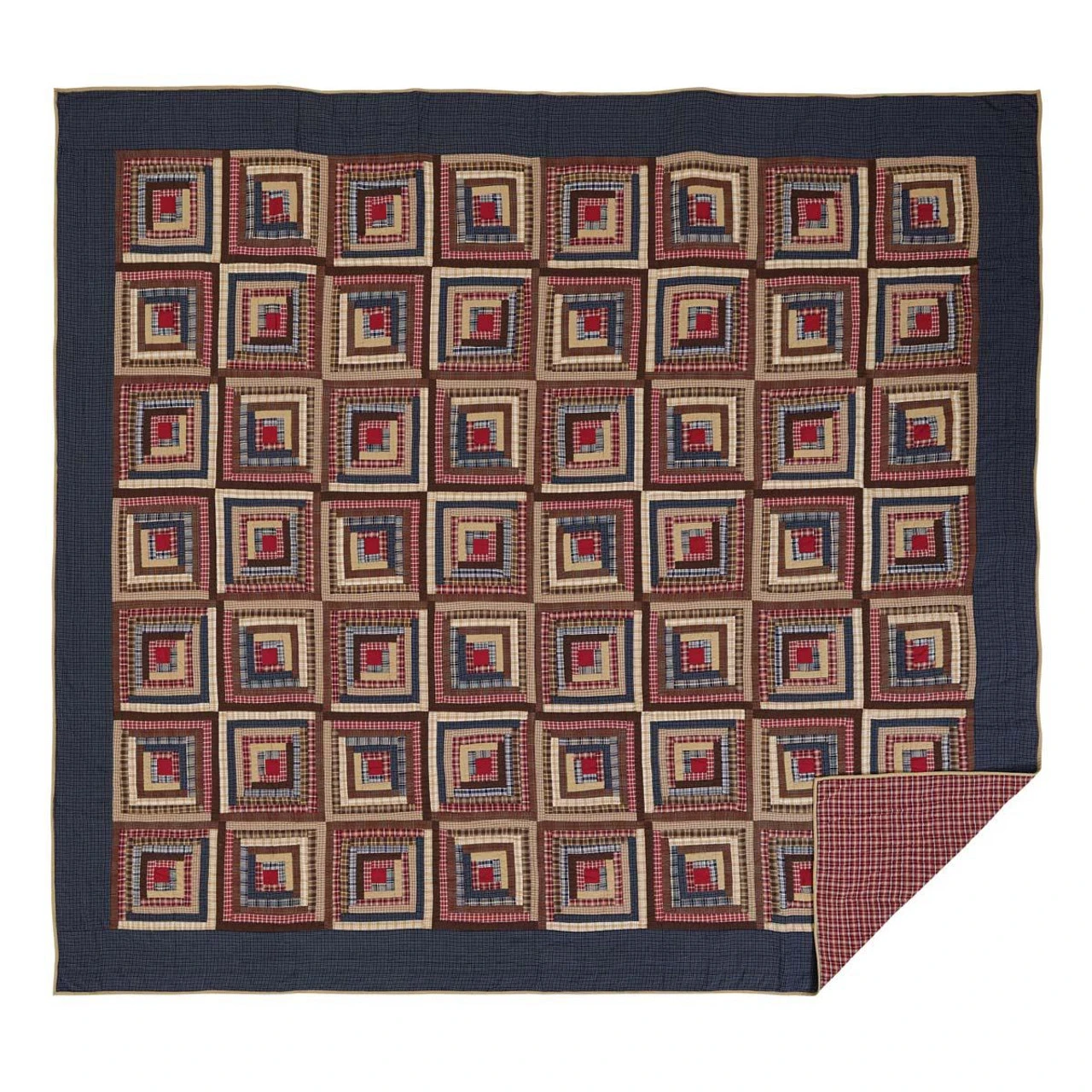 Americana inspired, hand quilted and very soft! The Braxton Collection Quilts by Victorian Heart feature log cabin blocks in navy, apple red and natural tones for a timeless look.