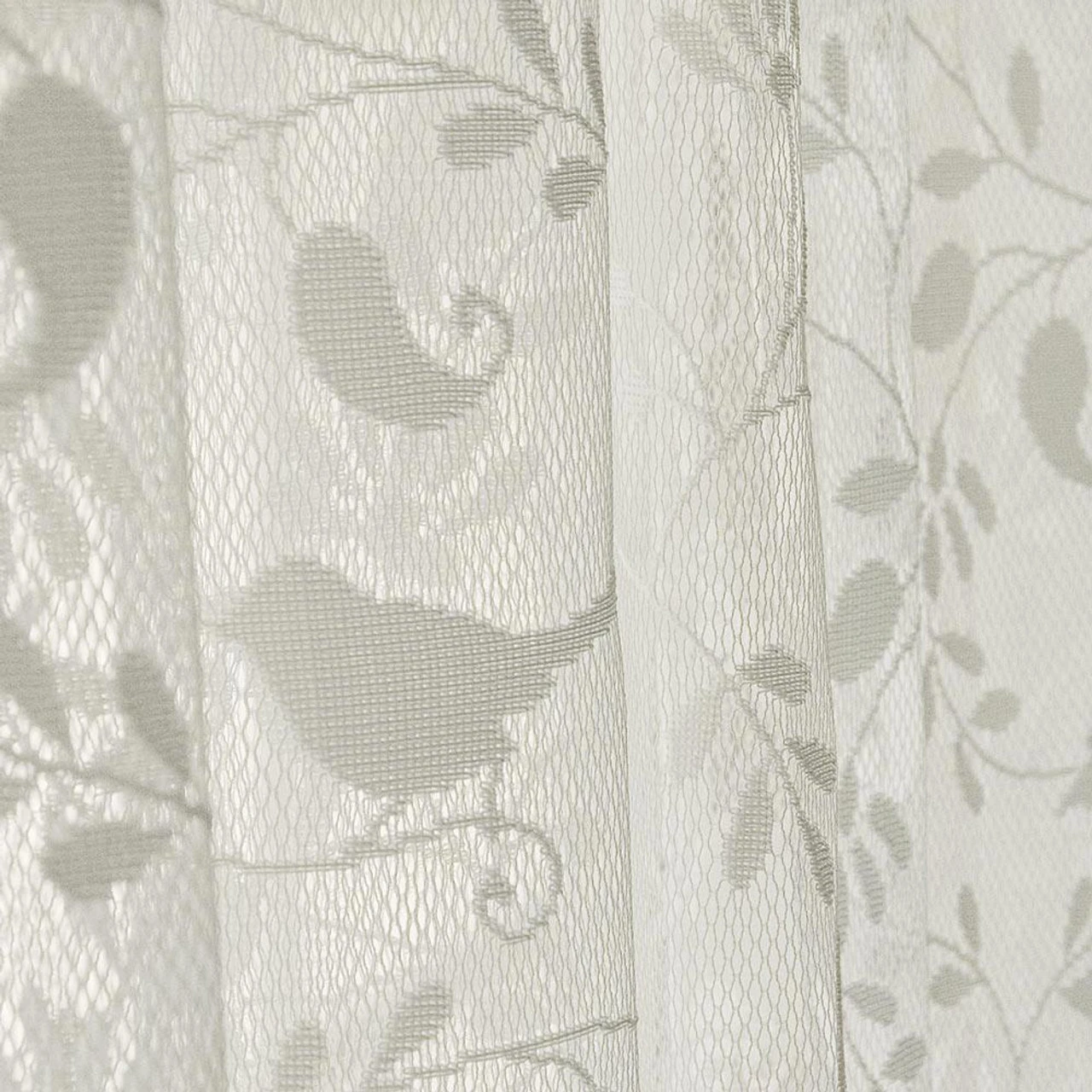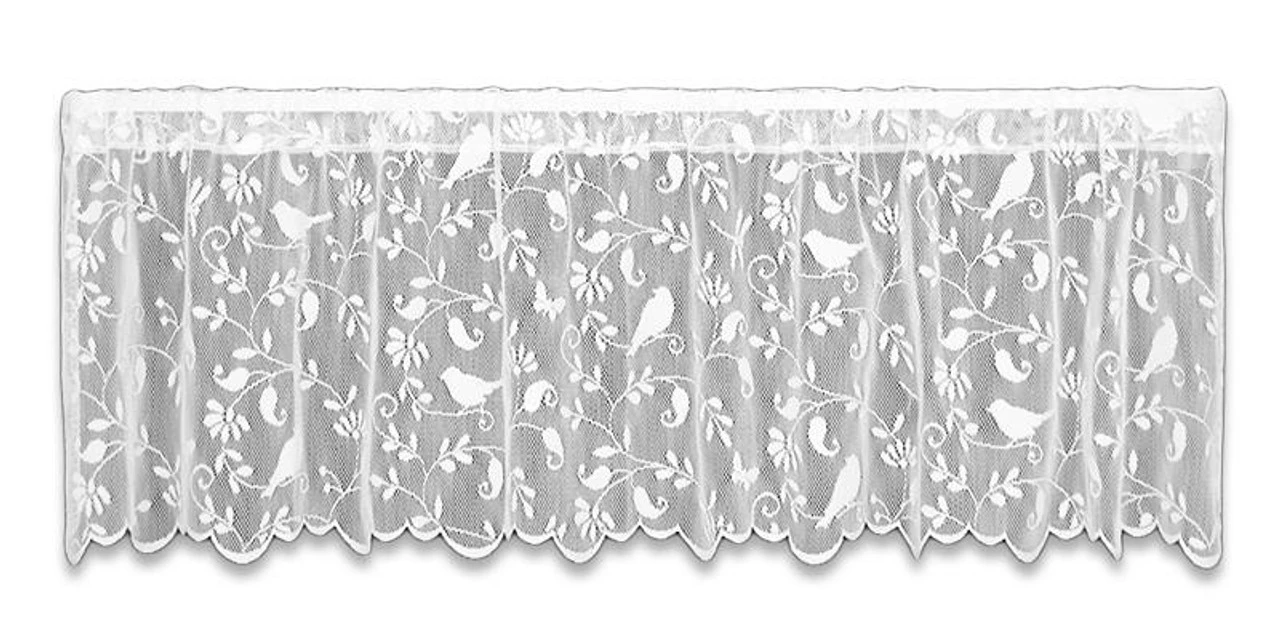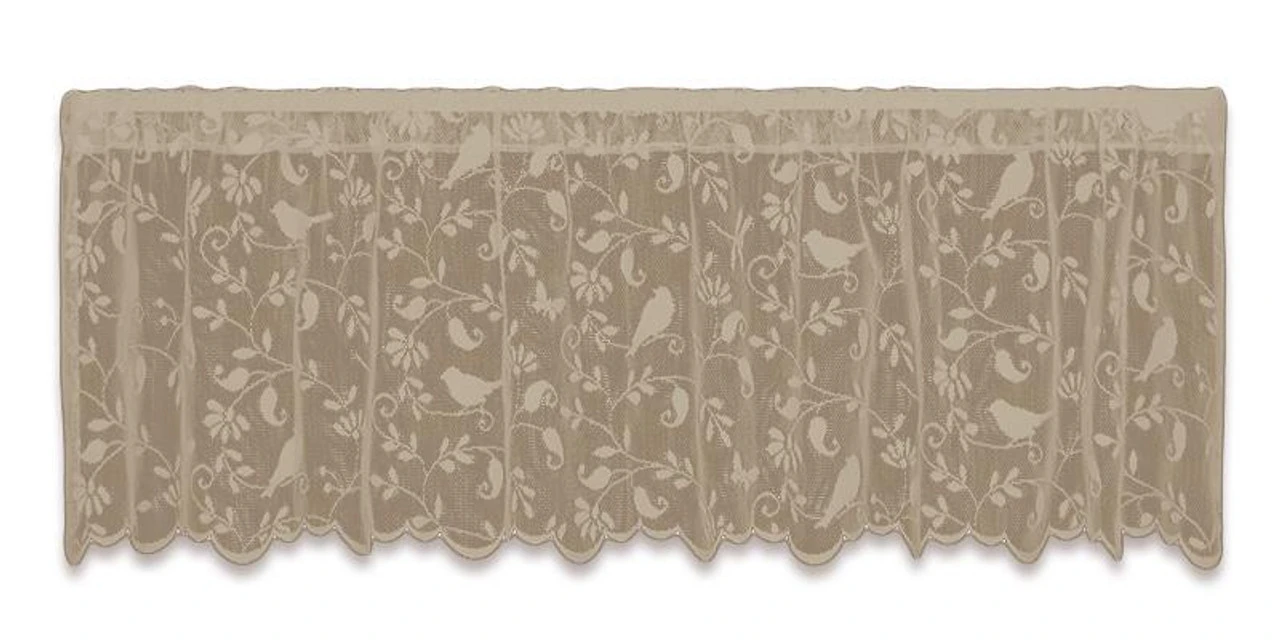 Our Bristol Garden Lace Valance offers a peek into the great outdoors! Grace your home with soft silhouettes of birds perched upon leafy branches. A gorgeous lacy window accent that allows light to shine through, keeping your room bright & cheery…while adding a little whimsy to your home! Neutral colors allow it to fit any decor!
