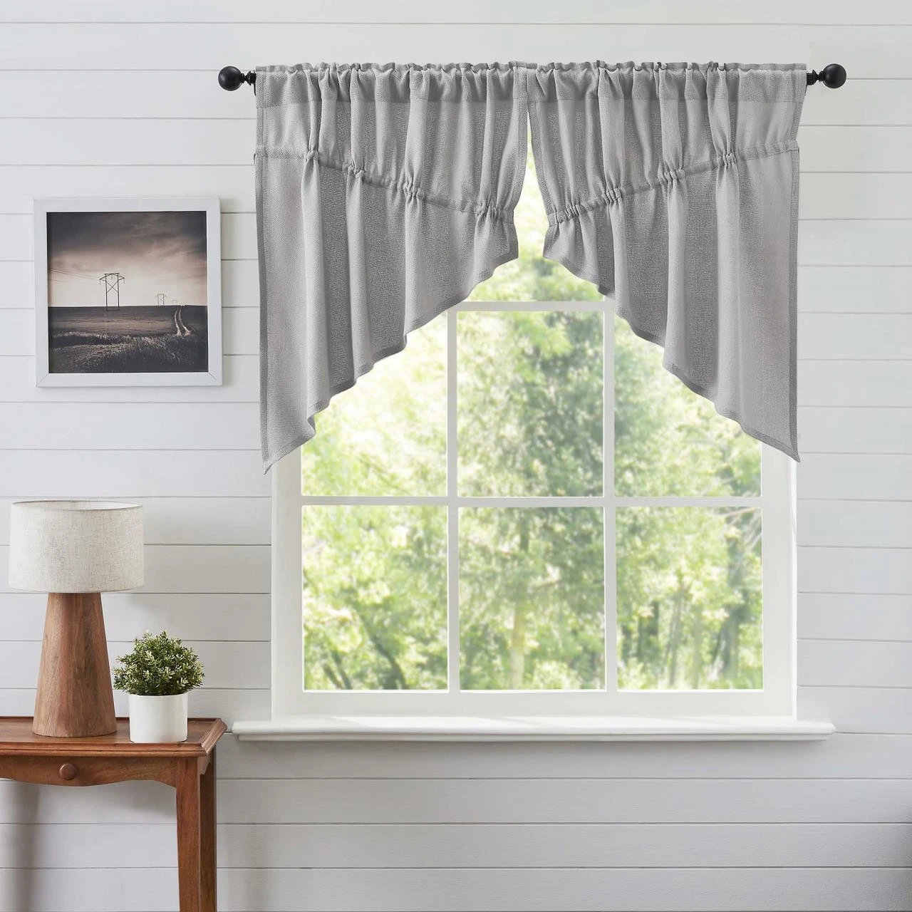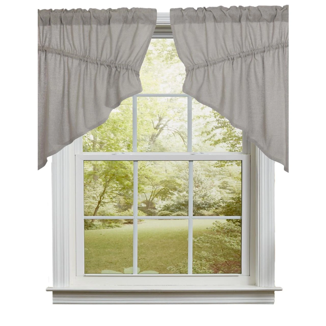 Burlap Dove Grey Prairie Gathered Curtains – 72×36