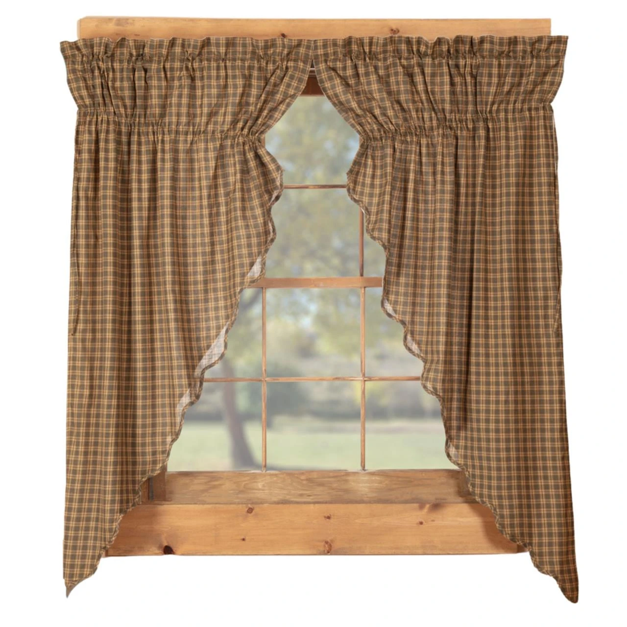 Add warmth and style to your window with the Cedar Ridge Scalloped Prairie Gathered Curtains by VHC! Tones of forest green, farmhouse tan, and chocolate combine to create a charming plaid pattern! Perfect accent for your country decor!