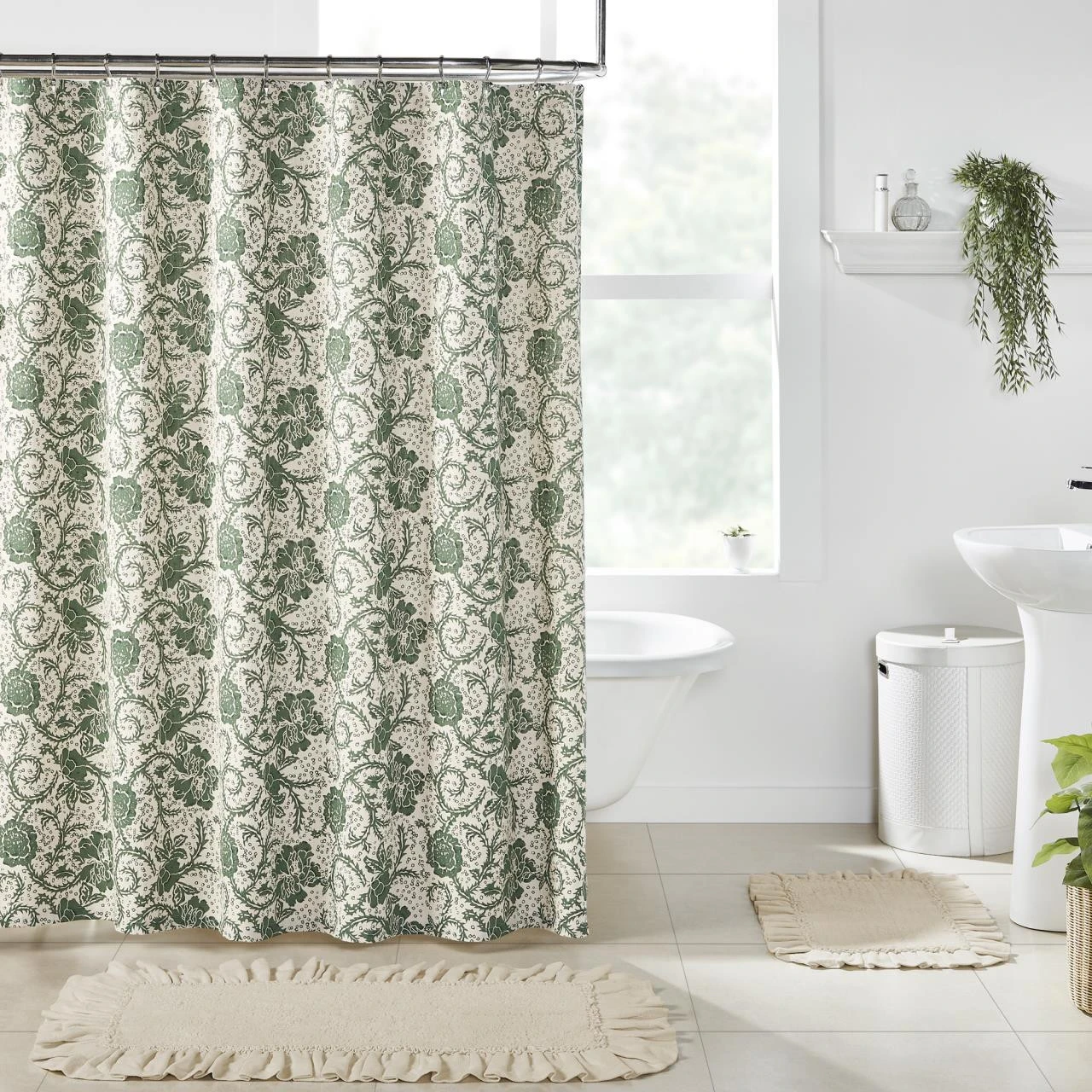 Add a gorgeous country accent to your bathroom with the Dorset Green Floral Shower Curtain by VHC! The shades of quaker green and candlelight white combine to create a beautiful floral pattern sure to wow your guests!
