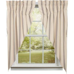 Add farmhouse style to any window with the Grace Grain Sack Stripe Prairie Panels by VHC! The gorgeous grain sack stripe pattern featuring oatmeal and dark greige tones creates the perfect country accent!