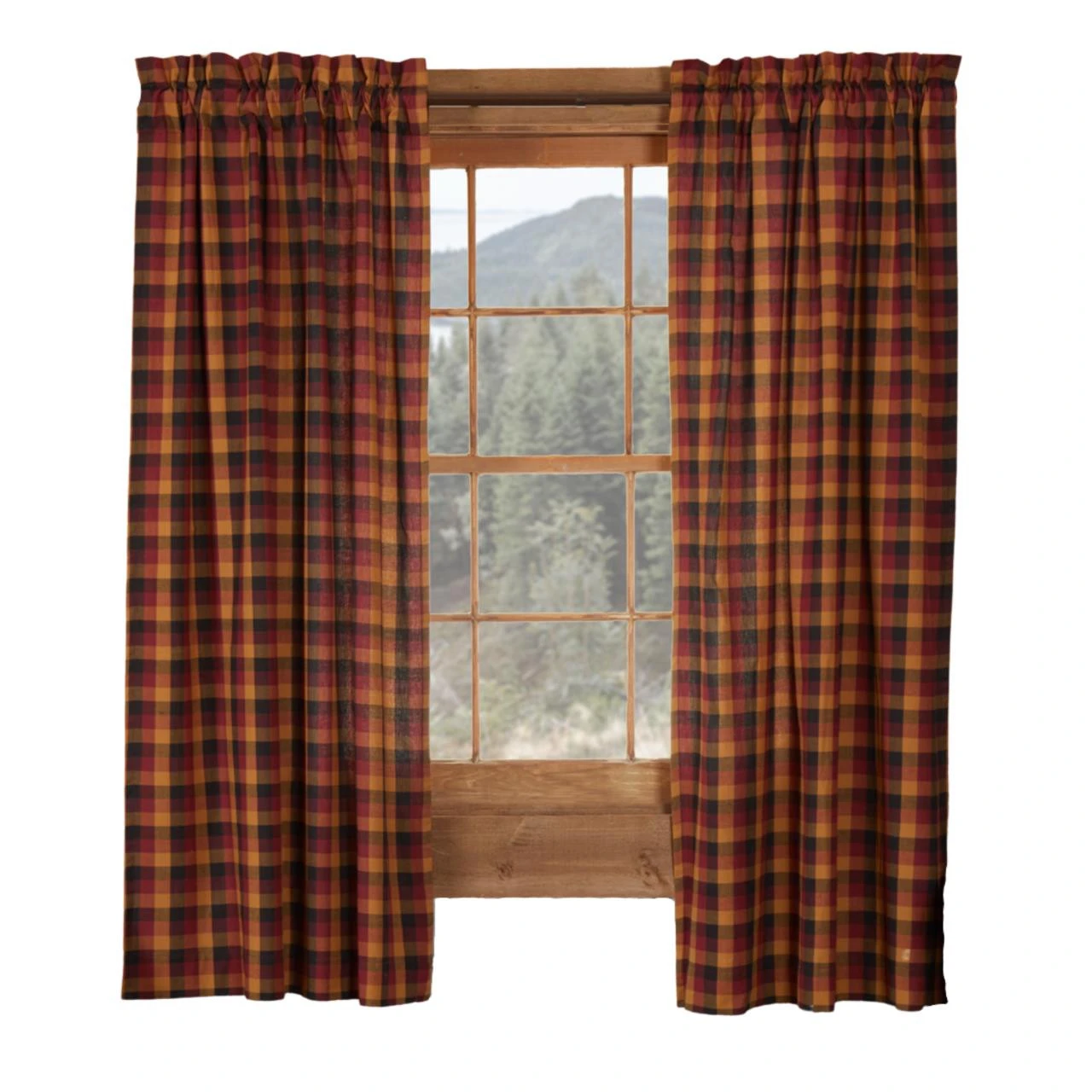Add a gorgeous accent to your window with the Heritage Farms Primitive Check Panels by VHC! Featuring tones of chamomile, patriotic red, and black in a charming check pattern, these panels are sure to add country style to your decor!
