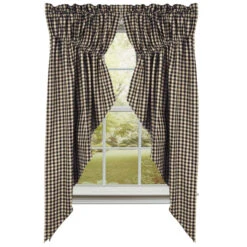 Heritage House Check Black Prairie Gathered Curtains – 72×63
