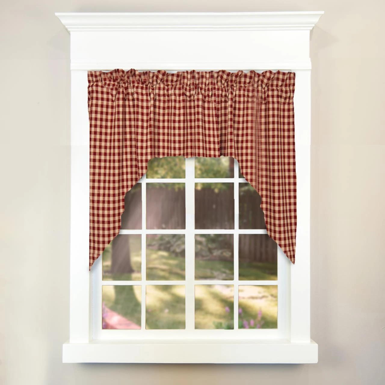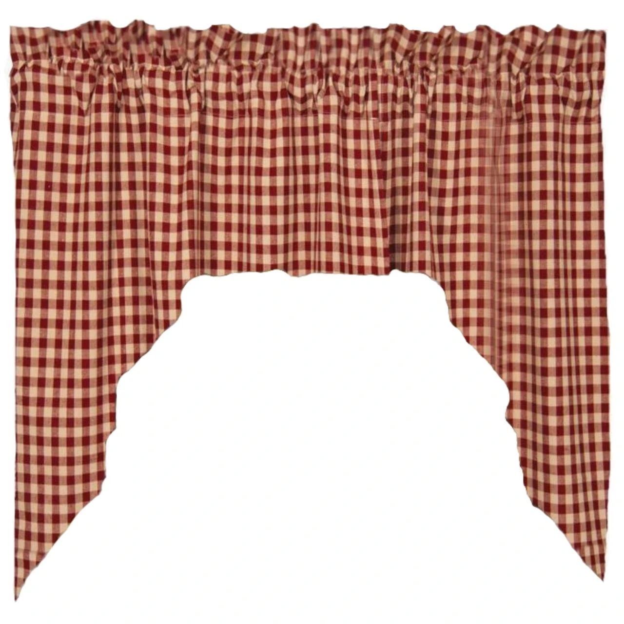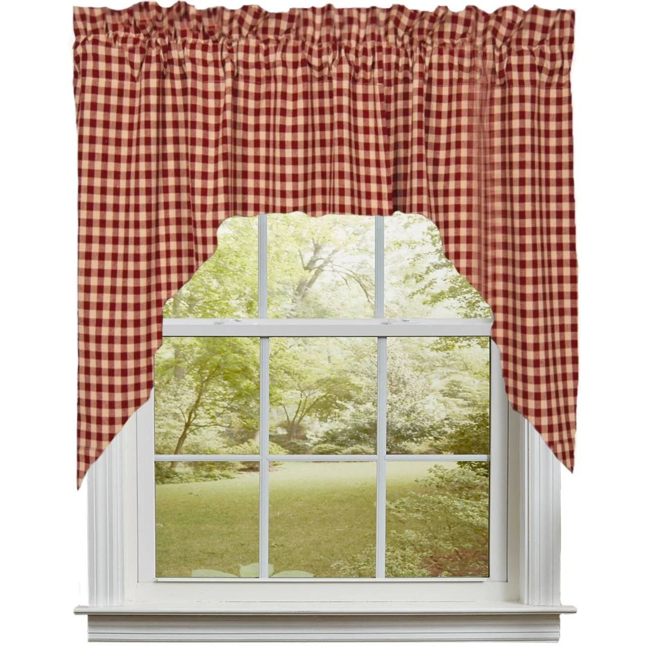 These adorable Heritage House Check Swags offer a lovely woven fabric in red & tan gingham that is so versatile, they will blend well with a variety of home designs! Charming on their own, or pair with coordinating tiers for a more dramatic appeal!