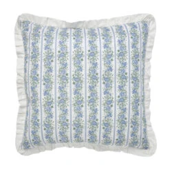 The Jolie Euro Fabric Pillow Sham by VHC will add that classic country look to your bedroom or any other room that needs a stylish touch with its charming blue, green, and candlelight white vertical floral vine design! The gathered ruffles are the perfect finishing touch! A great way to add a fresh new look!