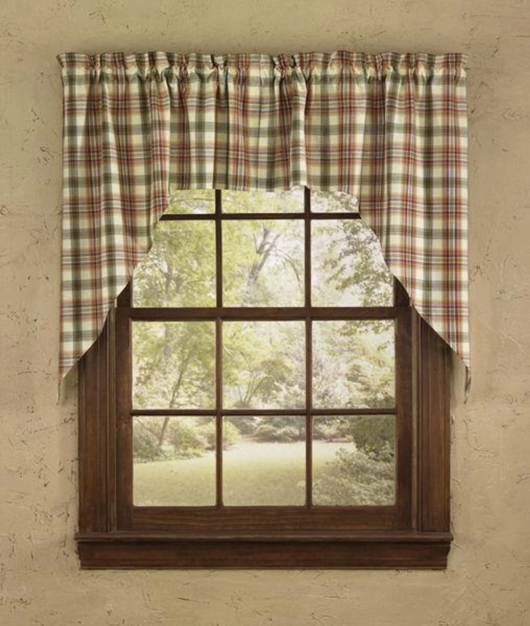 Let these Lemon Pepper Swags add a little zest to your decor! This simple, yet stylish, swag combines spicy colors of mustard, honey, green, red & cream to create a colorful, homey plaid that spreads savory sweetness throughout your home! They softly frame your window, and come unlined to allow soft, filtered light to shine through! Perfect for your home decor!