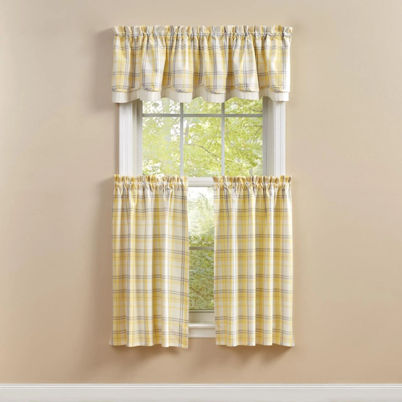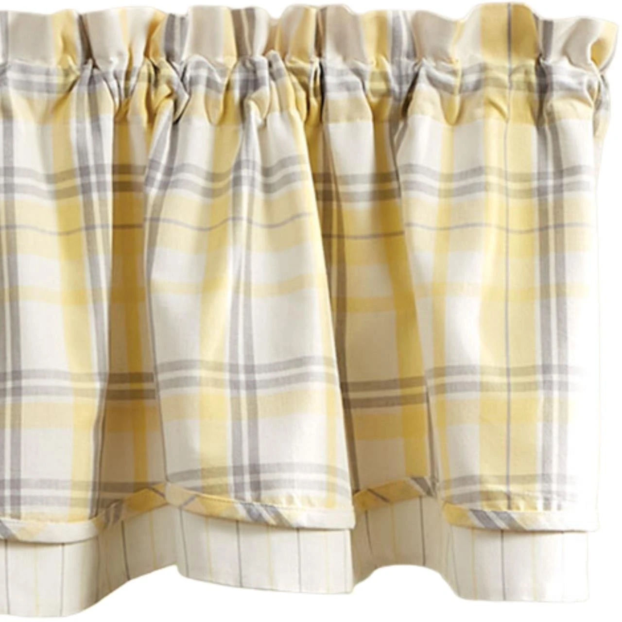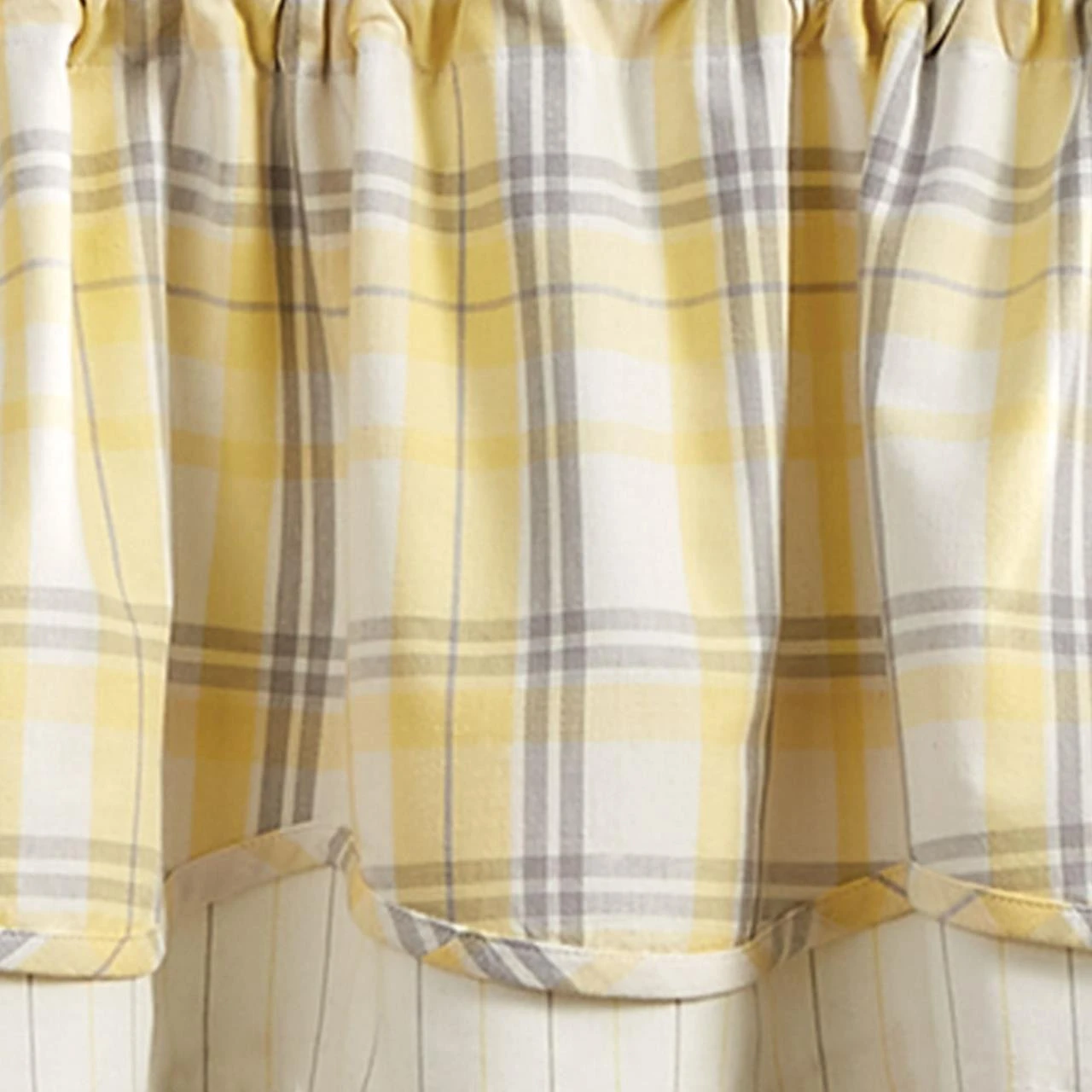 Trim your windows with the Meadowlark Lined Layered Valance by Park Designs! The colors of lemon yellow, dove gray, and candlelight white combine to create a bright and cheery plaid! Use by itself, or pair with the coordinating tiers (as pictured / sold separately)!