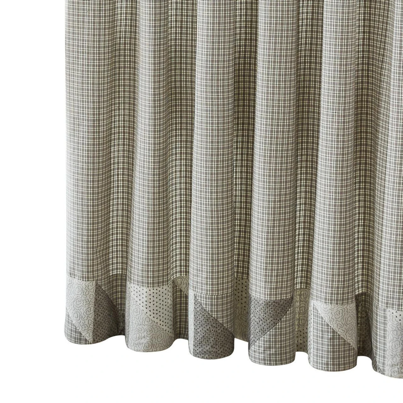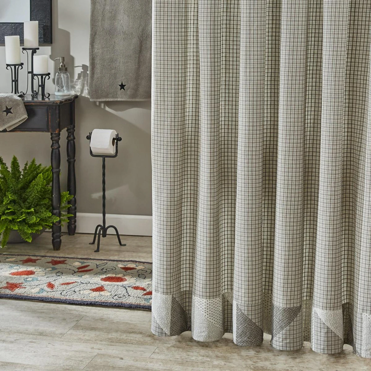 Add a gorgeous accent to your country bathroom with the Millstone Shower Curtain by Park Designs! Featuring tones of gray, antique white, and black in a checked pattern and complementary various patterns at the bottom, this shower curtain is sure to add charm to your decor!