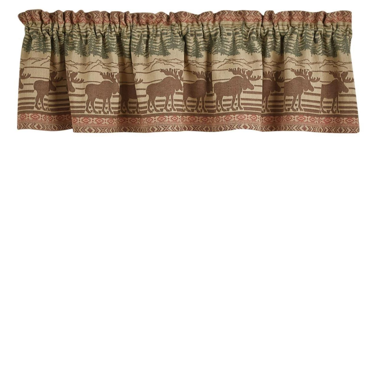 The Moose Jacquard Valance by Park Designs offers a beautiful outdoorsy appeal! Featuring a blend of neutral colors and a pop of red that work together to create a breathtaking scene of moose in their natural habitat, the design is sure to bring the rugged outdoors in! Coordinate with the complementary Moose Jacquard kitchen linens and curtains to complete the look!