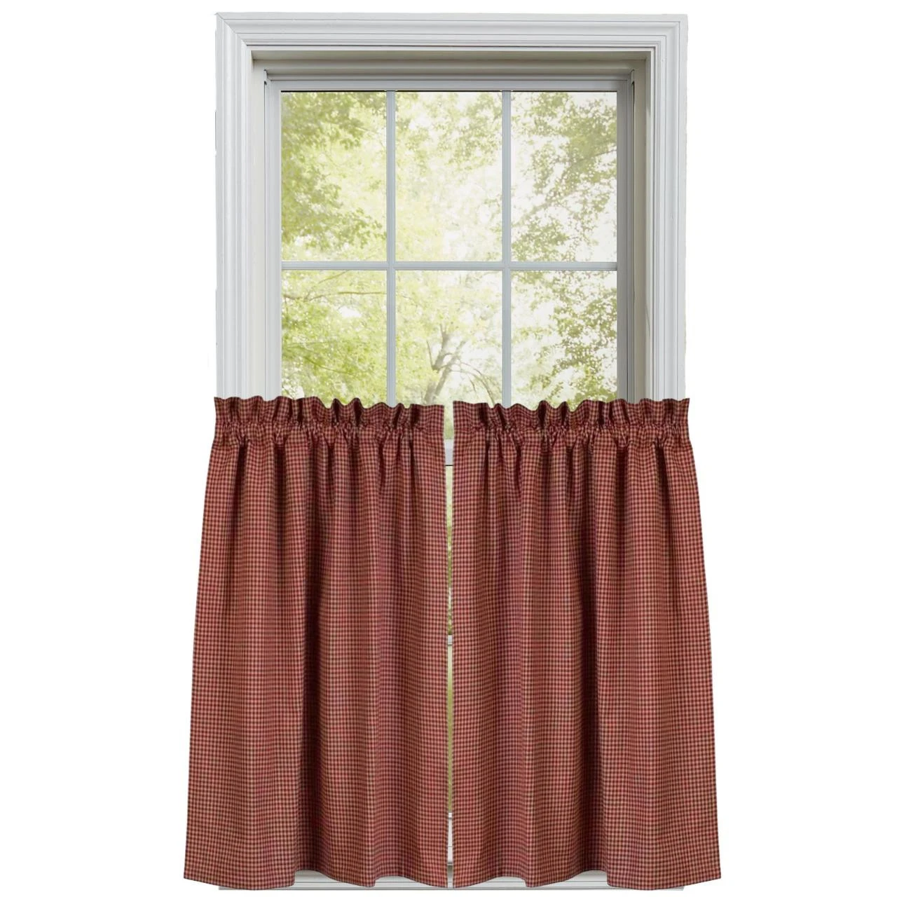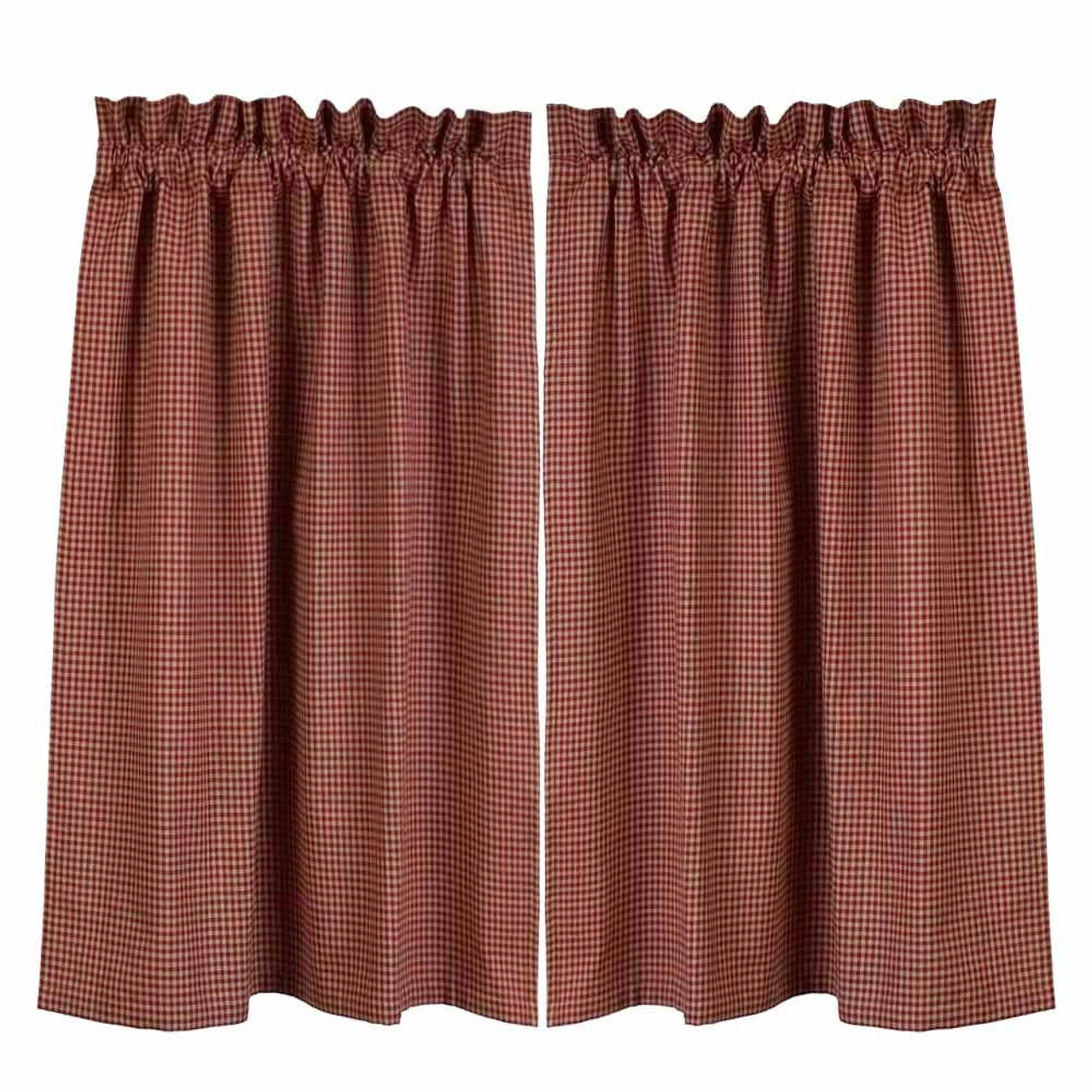 The Newbury Gingham Red Tiers feature a mini-check in lovely red & oat tones. Simple yet stylish, these country curtains coordinate well with many home designs! Pair with a coordinating valance for a more dramatic appeal!