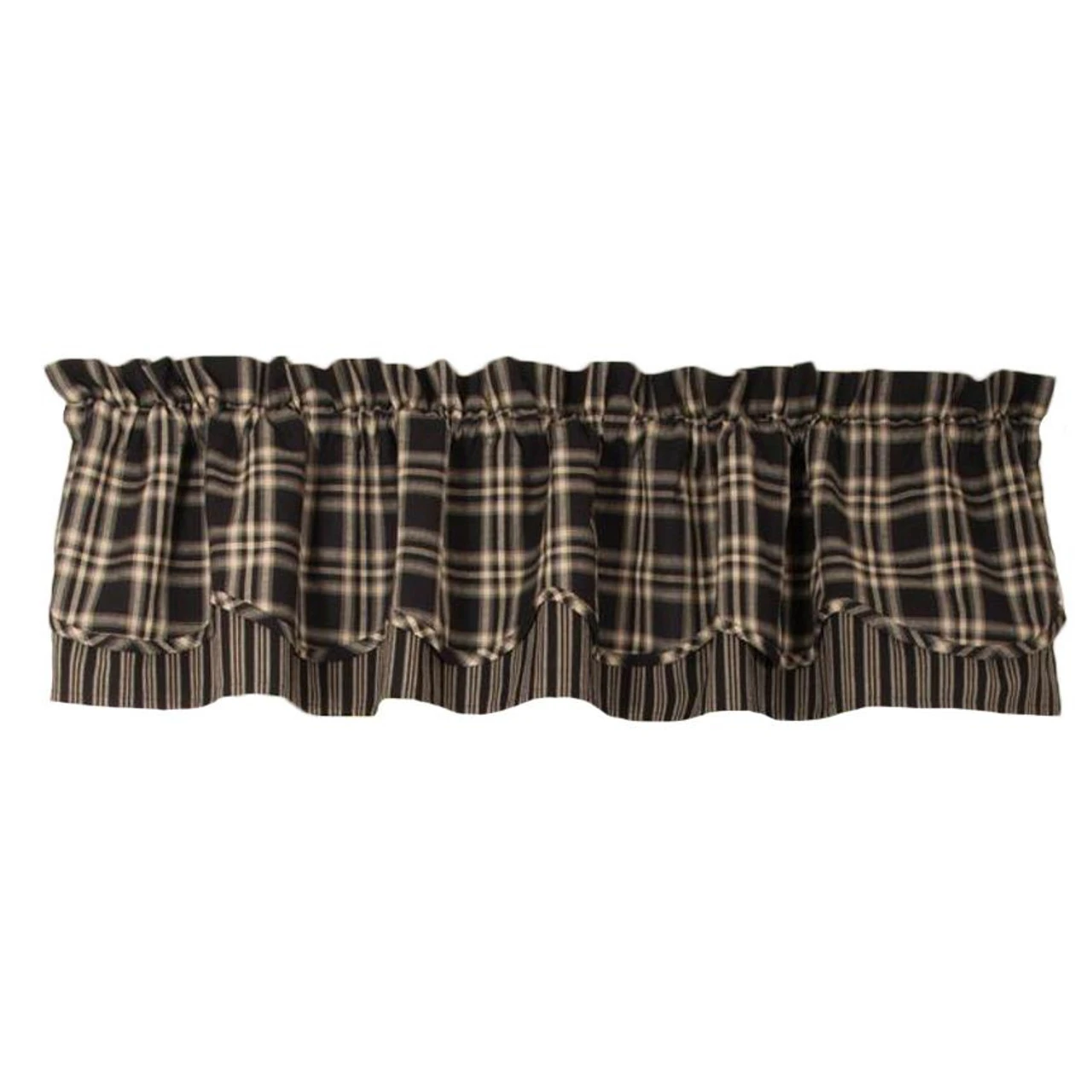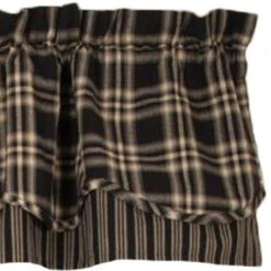 Decorate your country home with the classic and beautiful Richman Fairfield Valance by Home Collections by Raghu, which features a traditional black and candlelight white plaid pattern! The complementary striped bottom is the perfect finishing touch!