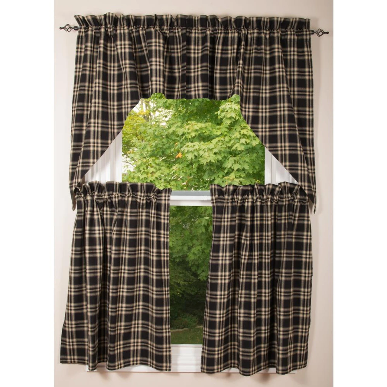 Decorate your country home with the classic and beautiful Richman Swags by Home Collections by Raghu, which feature a traditional black and candlelight white plaid pattern! The perfect way to add country style to your decor! Pair with the coordinating tiers for a complete look (as pictured / sold separately)!