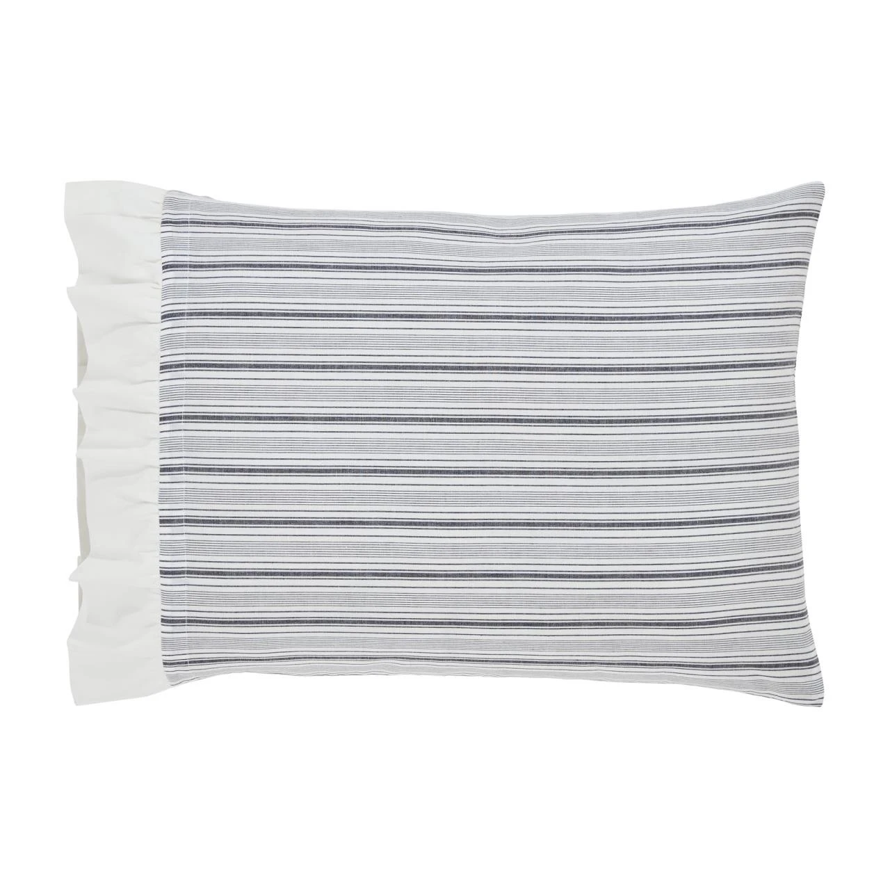 Complete the look of your bedding with the Sawyer Mill Black Ruffled Standard Pillowcases by VHC. Rich alternating colors of black and candlelight white will give your room a refreshing look! The ruffle is the perfect finishing touch!