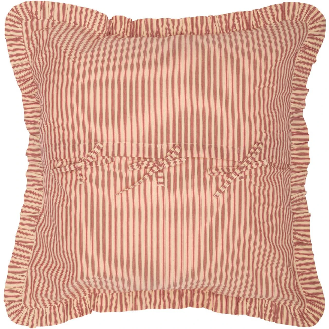 The Sawyer Mill Red Ticking Stripe Euro Fabric Pillow Sham by VHC will add that classic country look to your bedroom or any other room that needs a stylish touch with its charming patriotic red and oatmeal striped design! The ruffles are the perfect finishing touch! A great way to add a fresh new look!