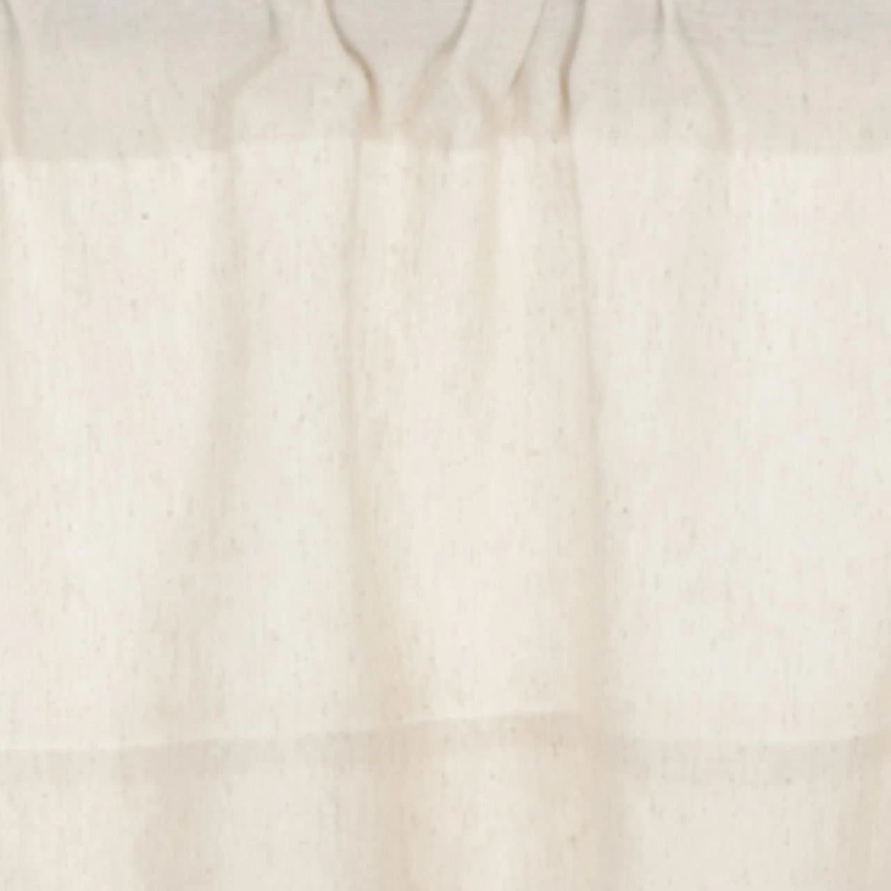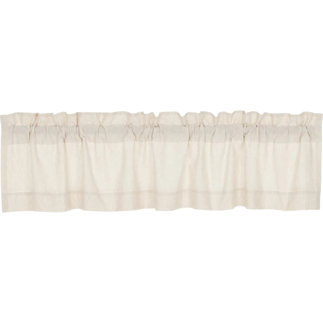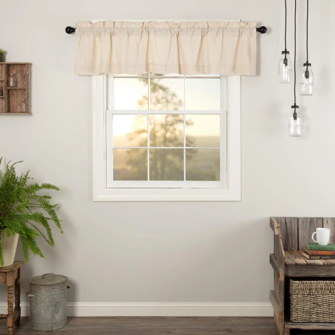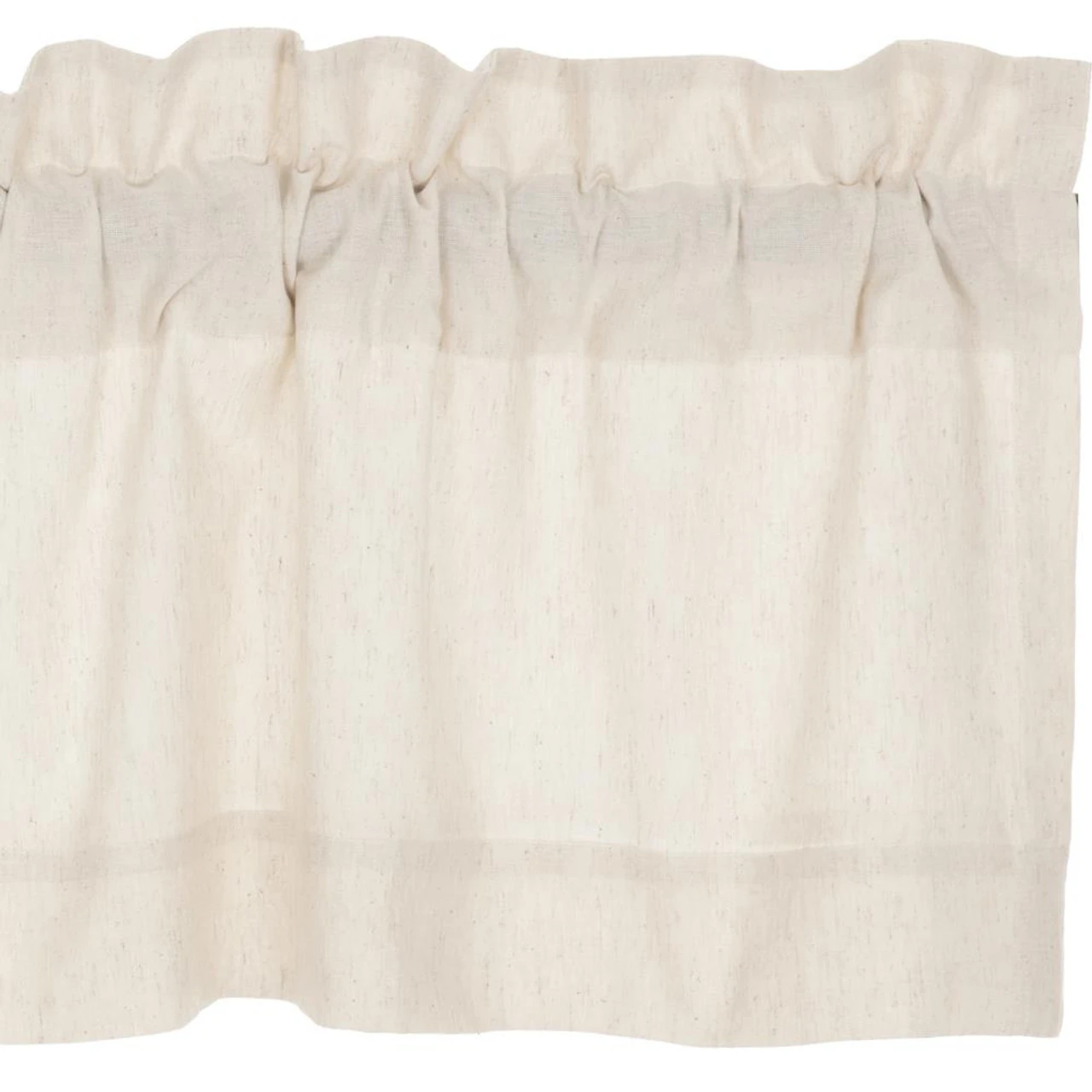If you’re looking for a casual country farmhouse style to dress your windows with, you will love the Simple Life Flax Natural Valance by VHC. The woven cotton and linen flax fabric gives a natural textured look and is finished with a dark thread to add subtle variation. Use alone or pair them with the matching tiers (sold separately).
