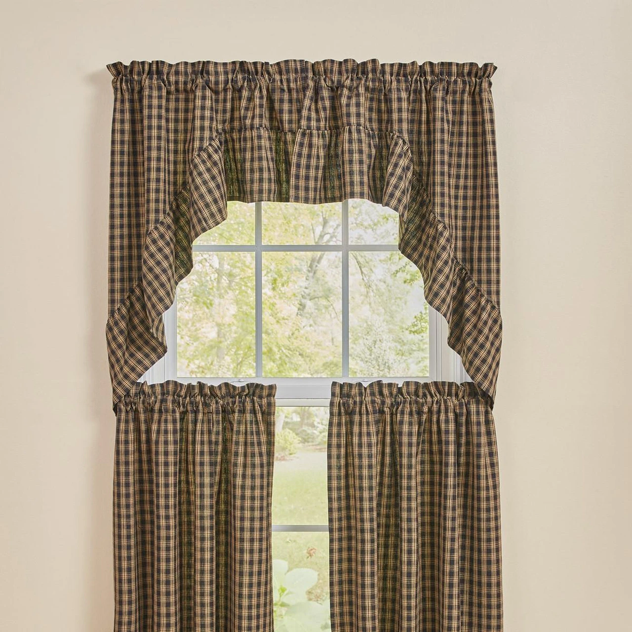 Add a gorgeous country accent to your window with the Sturbridge Plaid Black Ruffle Swags by Park Designs! The gorgeous plaid pattern in black and farmhouse tan gives classic style! The ruffles are the perfect finishing touch!