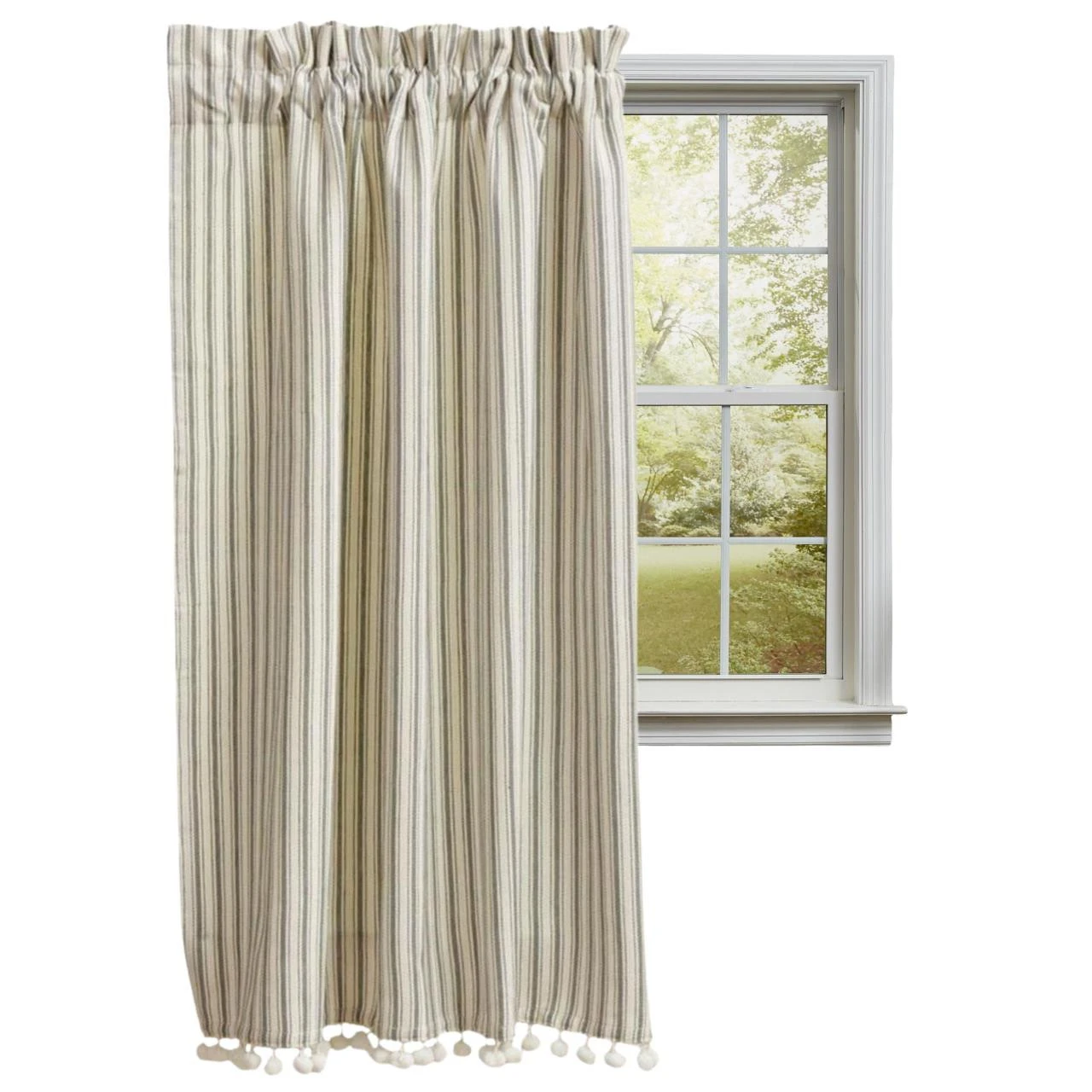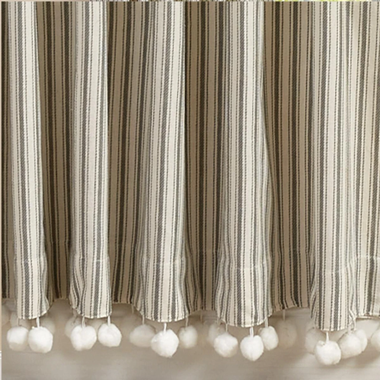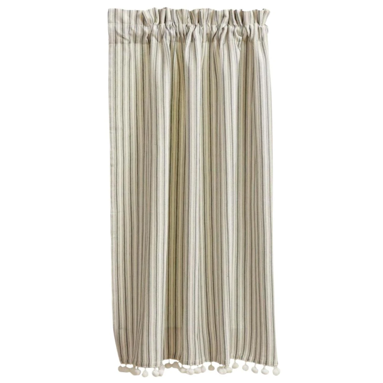 The Ticking With Ball Fringe Single Panel by Park Designs will add that classic country look to your home with its charming dove gray and candlelight white striped design! The ball fringe is the perfect finishing touch!