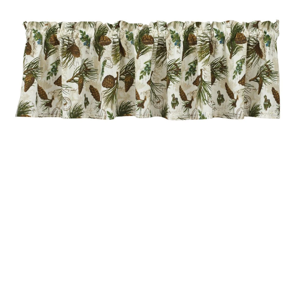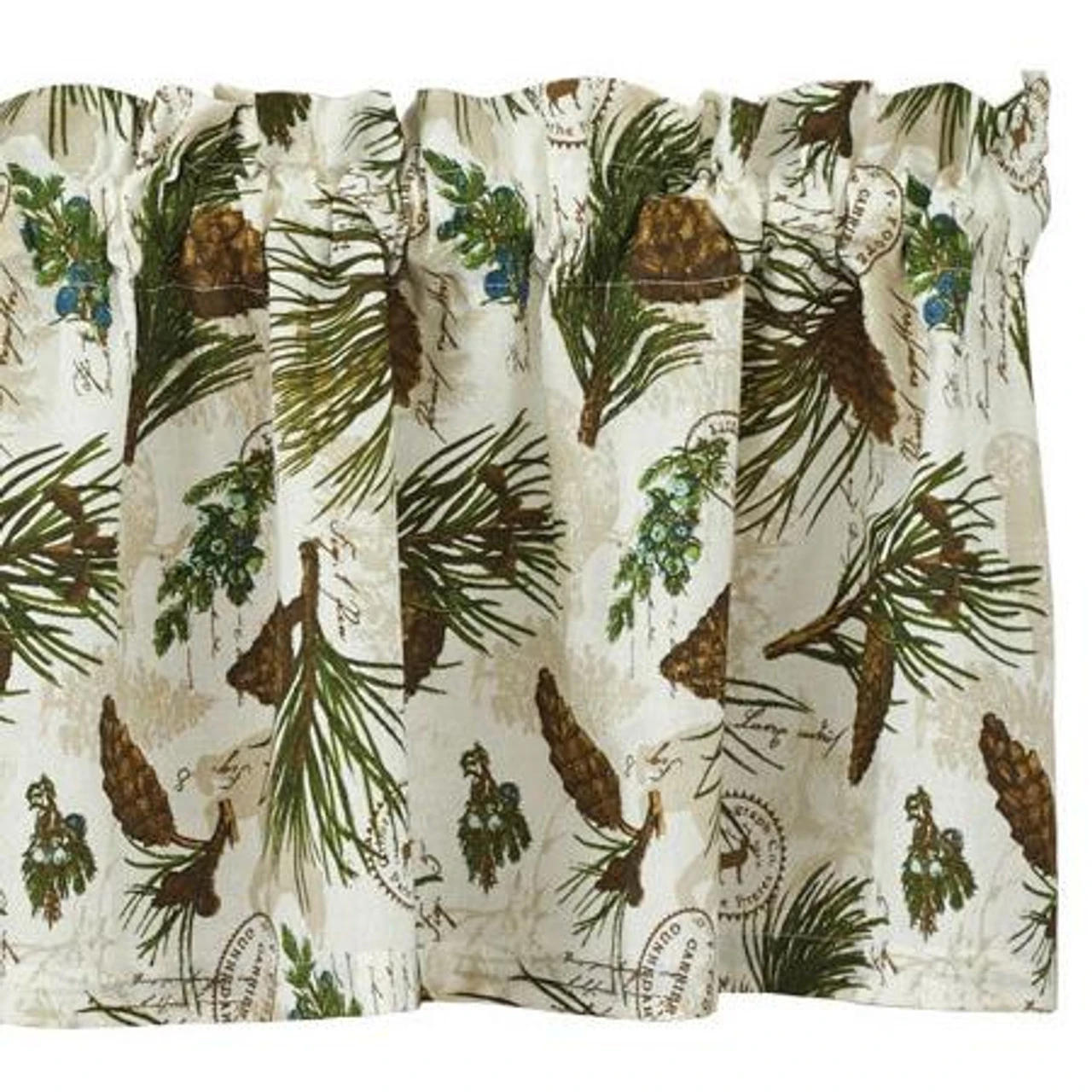 If you love that warm, outdoorsy appeal, these Walk In The Woods Valance is for you! Featuring woodsy elements including pine cones, boughs, evergreen needles & just a tiny touch of country blue berries, it is further enhanced with vintage-inspired stamp accents on a warm sepia-toned background!
