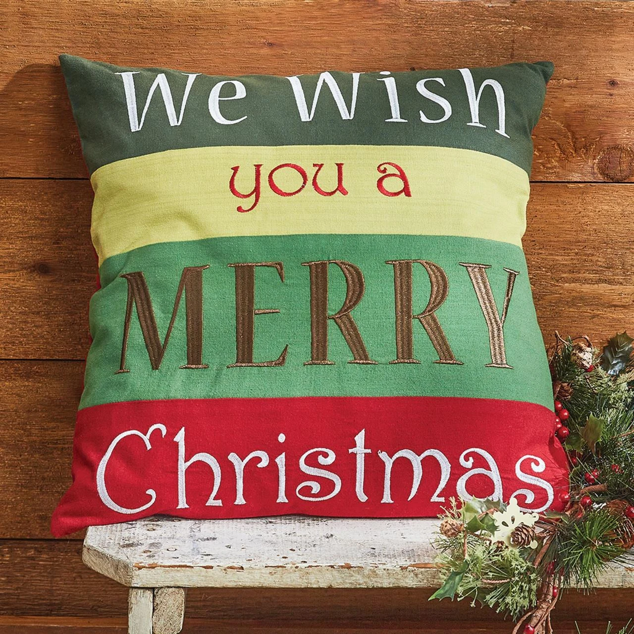 Add a fun and festive touch to your holiday decor with the We Wish You A Merry Christmas Pillow Set by Park Designs! Featuring a charming saying with striped greens and red, this pillow is sure to be a great addition to any corner of your home!