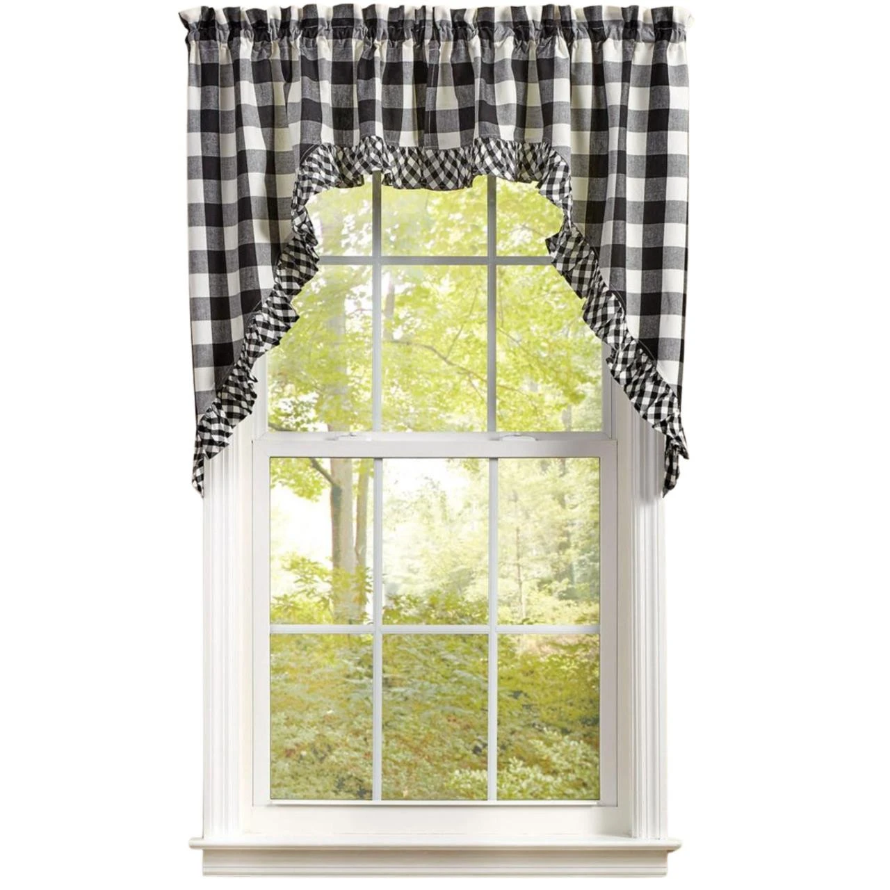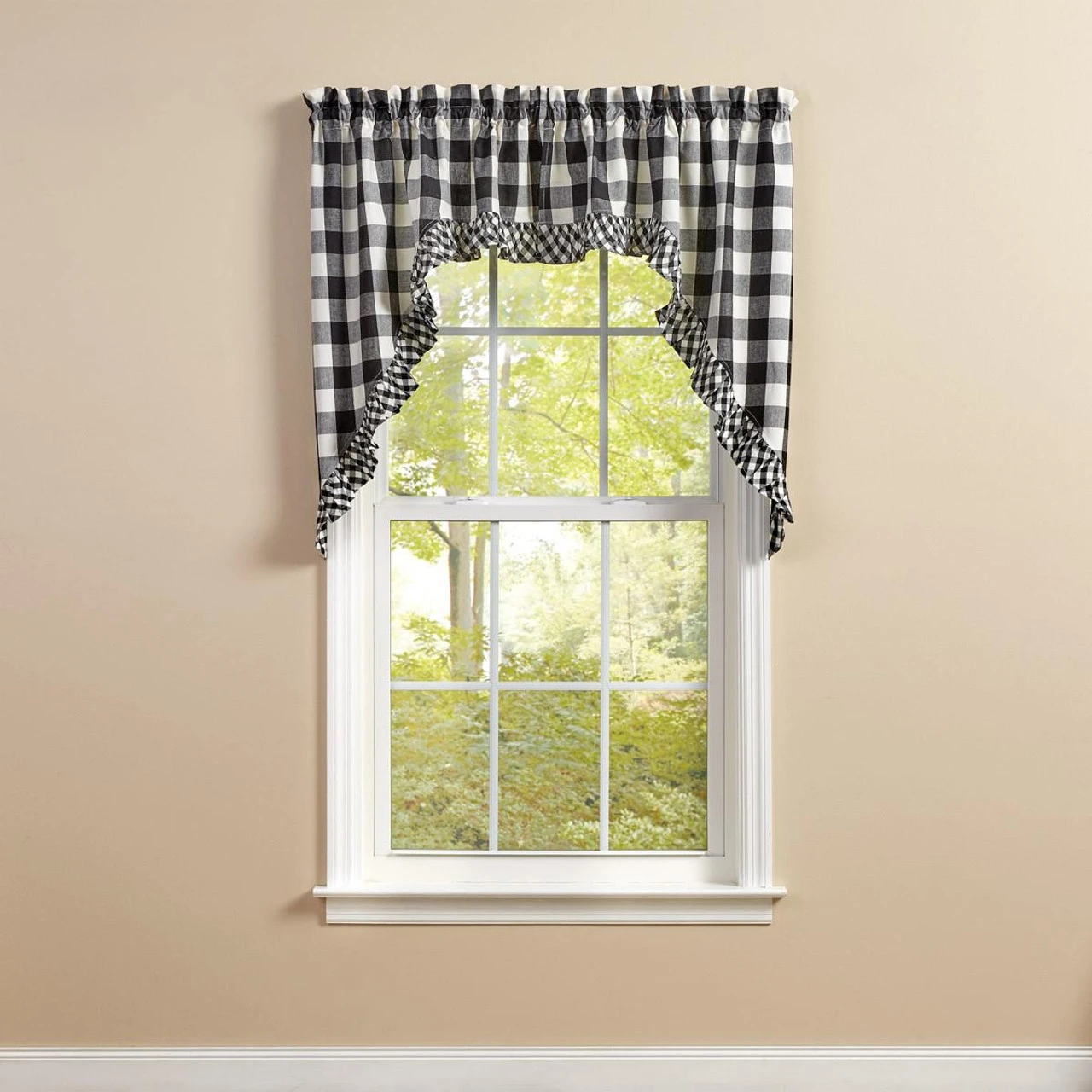 Wicklow Check Black & Cream Swags – Ruffled 72×36