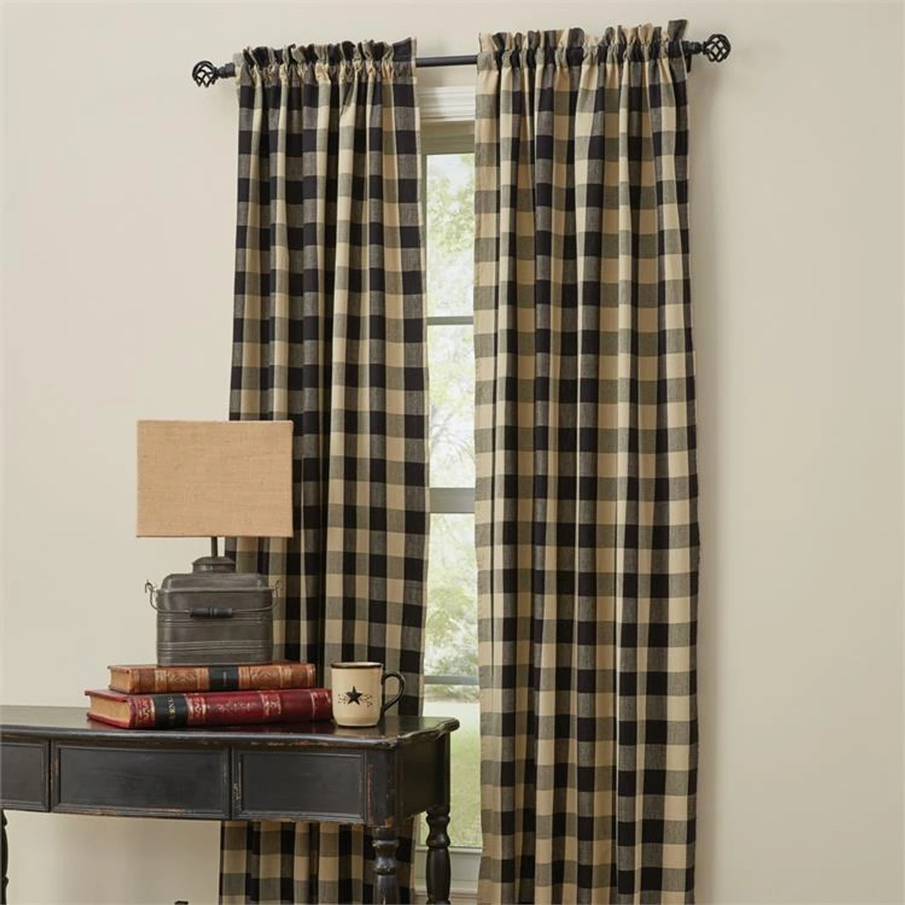 The Wicklow Black Panels offer a sweet, uncomplicated look! The popular black & tan blends beautifully to provide a classic farmhouse check that complements any country home design! These lined panels come with fabric tiebacks for a little versatility in style! Chic on their own, or pair with coordinating valance for a more dramatic appeal!