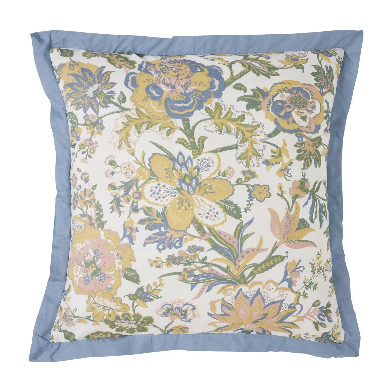 Brighten your bedroom with the Wilder Euro Fabric Pillow Sham by VHC! The pattern features beautiful florals, in a mixture of light country mustard, sage, cornflower blue, and candlelight white. The ruffled edges are the perfect finishing touch. So country vibrant!